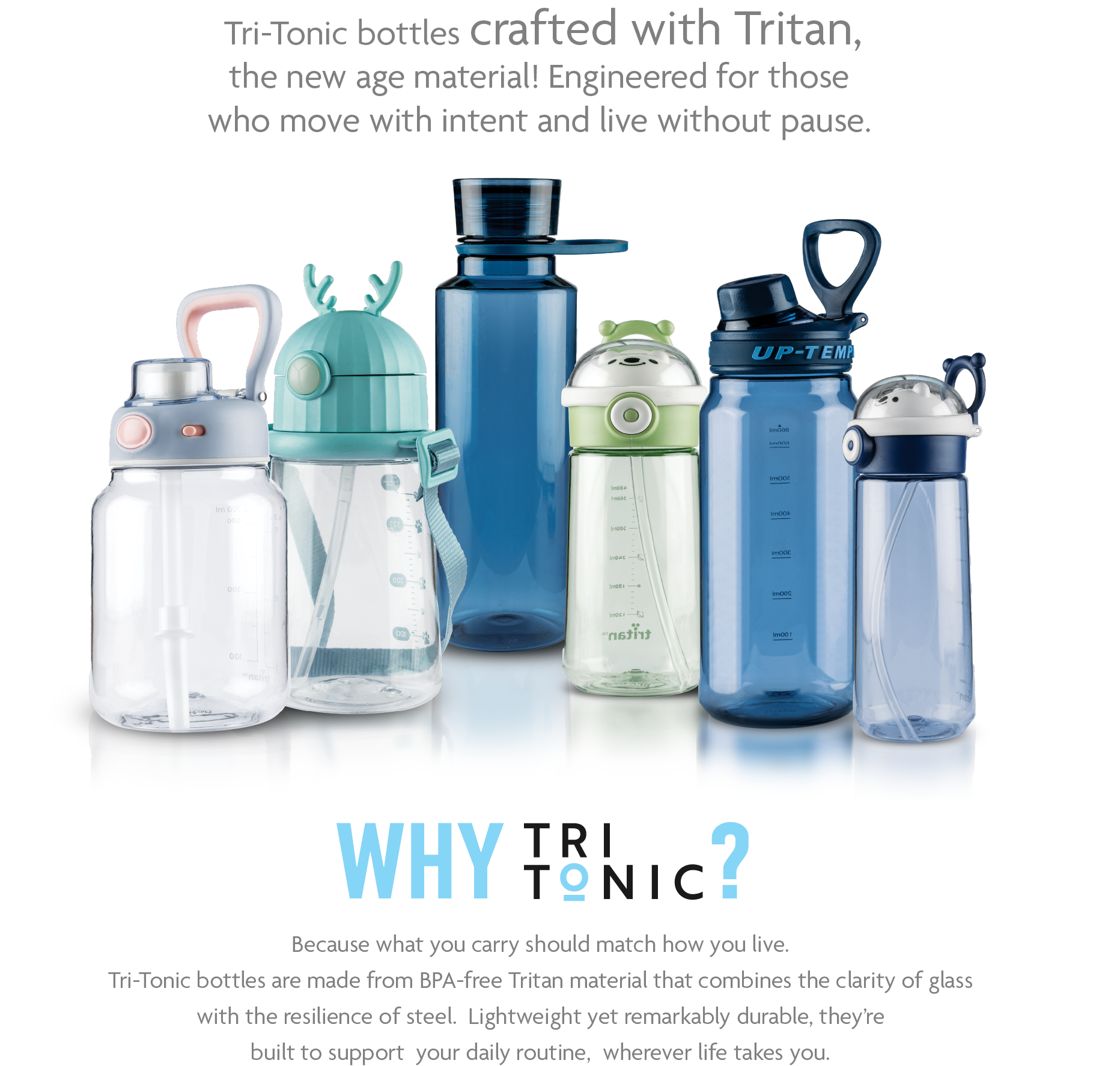 Tri-Tonic bottles are made from BPA-free Tritan material that combines the clarity of glass with the resilience of steel. Lightweight yet remarkably durable, they’re built to support your daily routine, wherever life takes you.